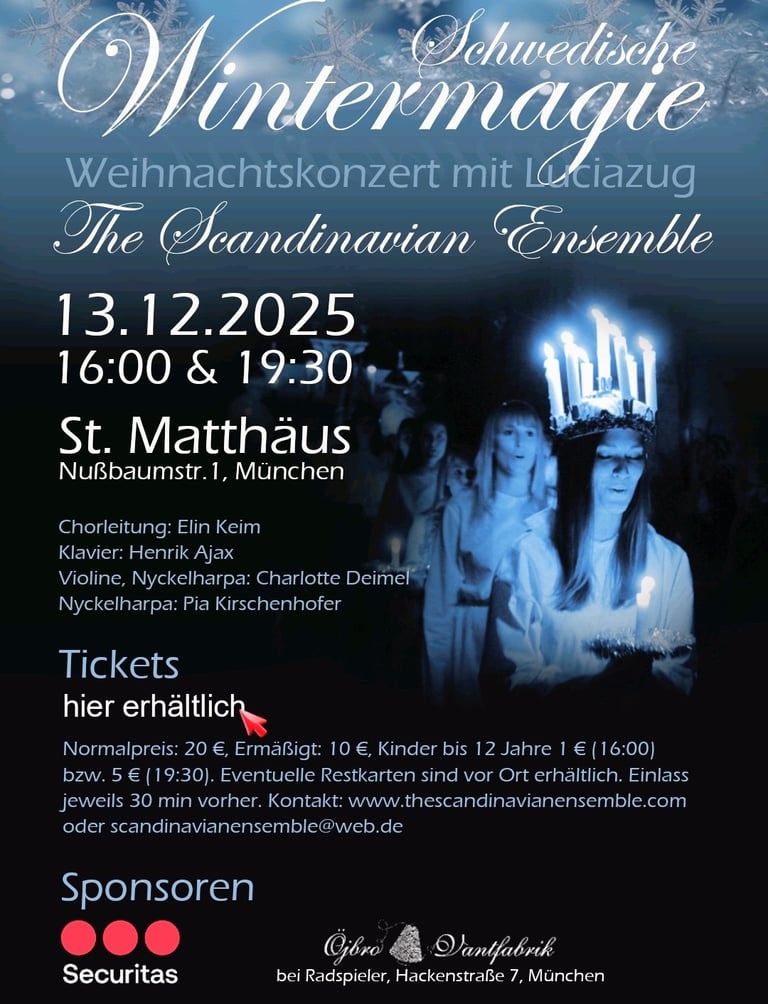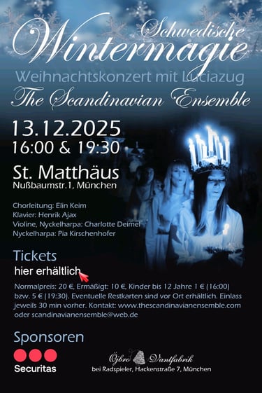 Genießen Sie unsere Konzerte mit wunderschöner skandinavischer Musik. Santa Lucia. Weihnachtskonzert. Frühlingskonzert. Schwedische Musik.